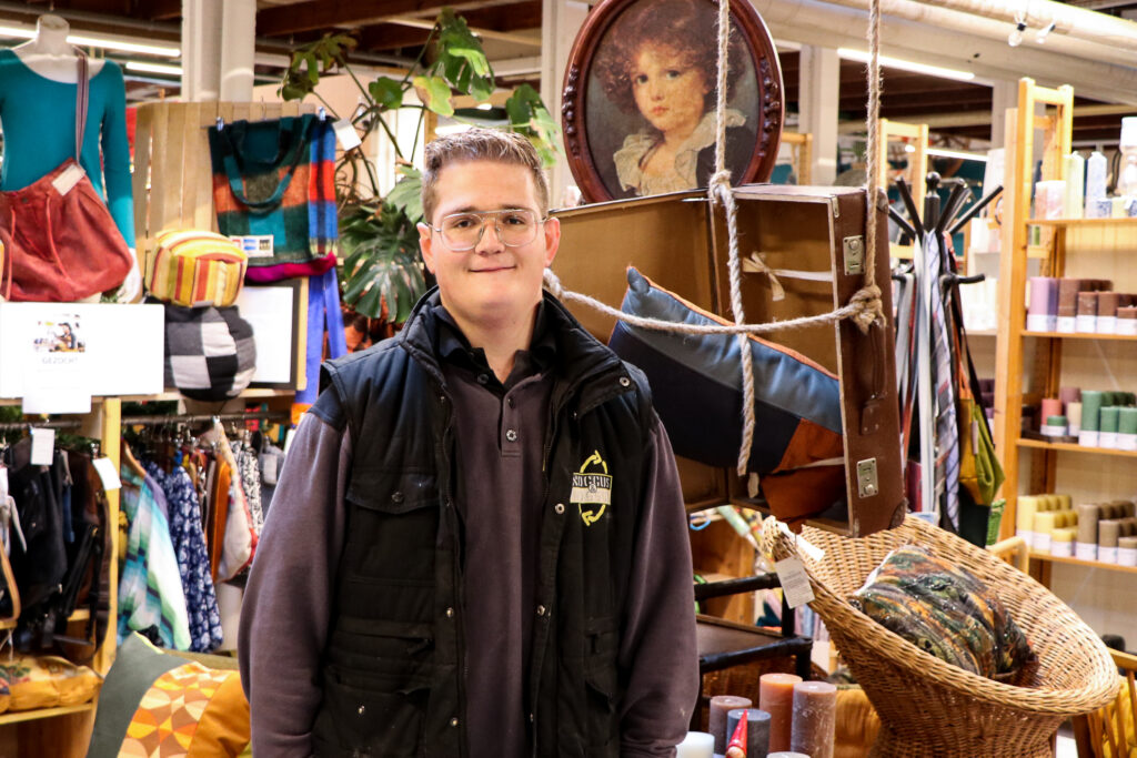Thijmen heeft het enorm naar zijn zin bij Noggus&Noggus. ‘Ik heb hele fijne collega’s. Iedereen helpt elkaar en gunt elkaar alles. Ze zijn ook net als ik altijd wel in voor een geintje. En de werkzaamheden zijn afwisselend. Kassa, inname, bus, spullen in de winkel zetten, ’s morgens weet ik nooit wat ik die dag ga doen. Het leukste vind ik het contact met de klanten. Weet je, ze komen vaak niet alleen om wat te kopen, ze komen ook voor de gezelligheid, de sfeer. Dat merk ik vaak en dan maak ik een praatje. Vroeger dacht ik dat ik in een tuincentrum wilde werken. Maar het gaat niet om het soort winkel, het gaat erom dat ik graag met mensen omga. Ik ben een mensenmens.’